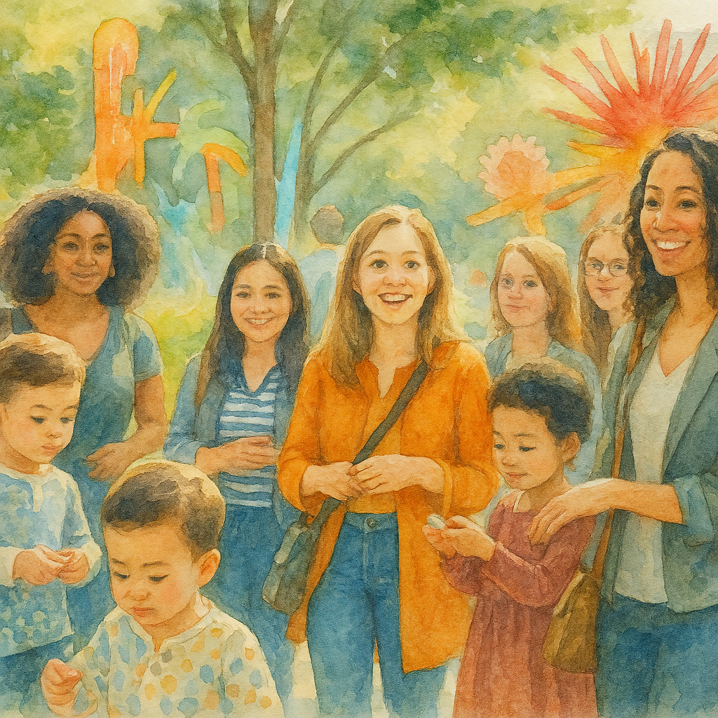 A hub for parents to share self-care tips, creative projects, and relaxing meetups that spark joy and serenity 🧘♀️.